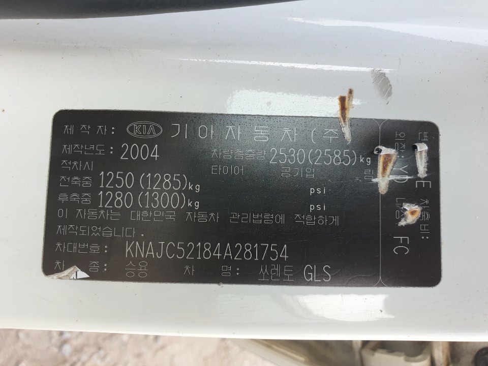 Model Kia Sorento Vehicle identification number KNAJC52184A281754