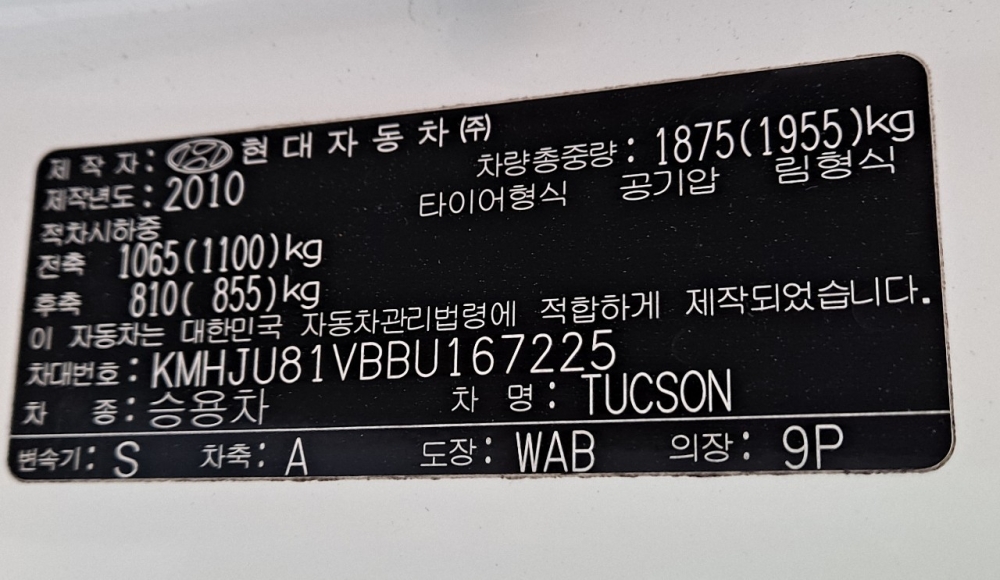 Model Hyundai Tucson Vehicle identification number KMHJU81VBBU167225