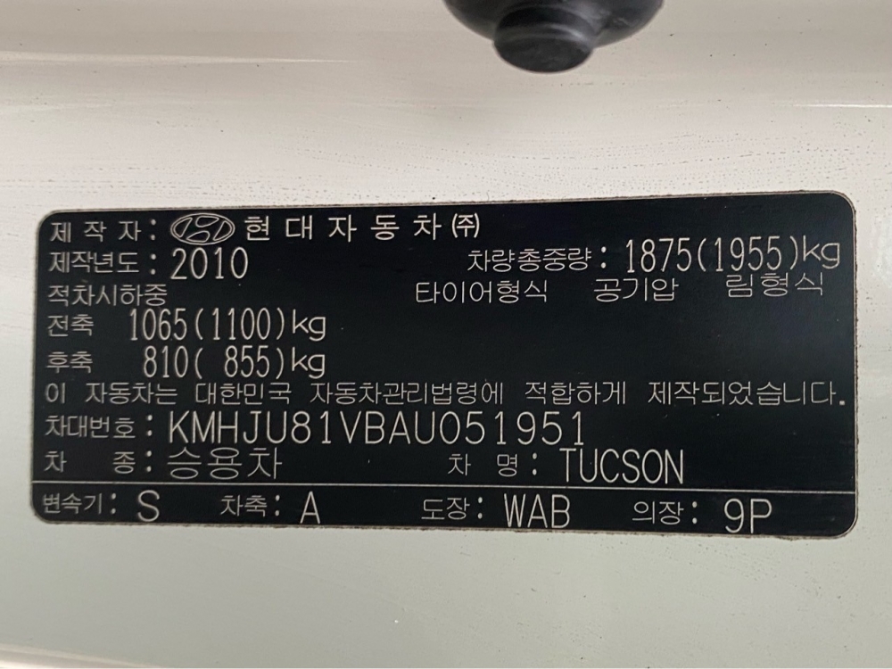 Model Hyundai Tucson Vehicle identification number KMHJU81VBAU051951