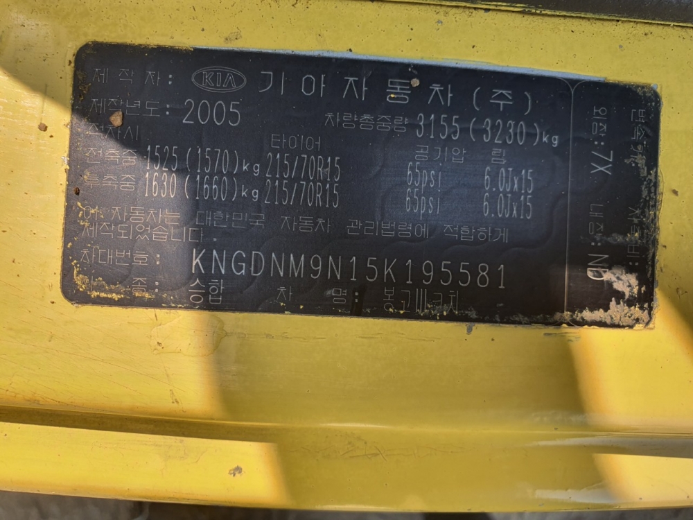 Model Kia Bongo3 Minibus Vehicle identification number KNGDNM9N15K195582