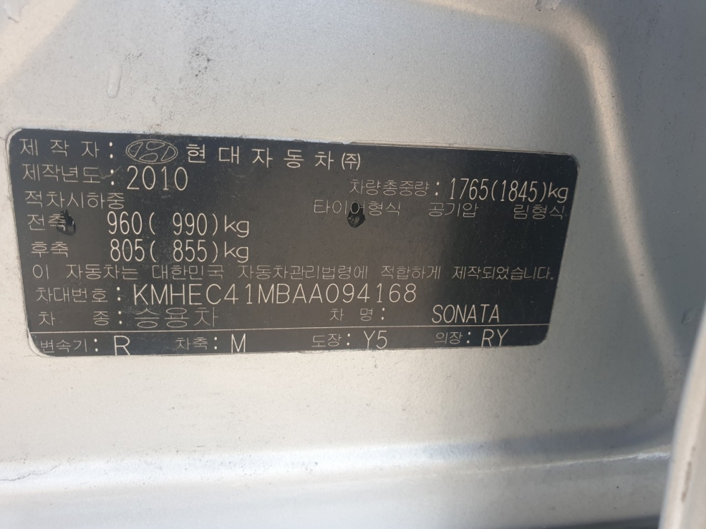Model Hyundai Sonata Vehicle identification number KMHEC41MBAA094168