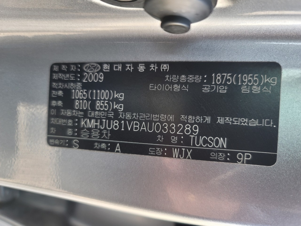 Model Hyundai Tucson Vehicle identification number KMHJU81VBAU033289