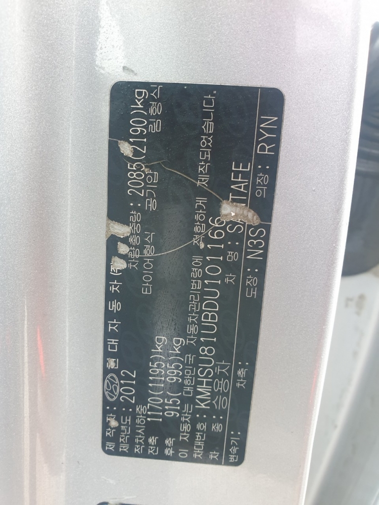 모델 Hyundai SantaFe 차대번호 KMHSU81UBDU101166