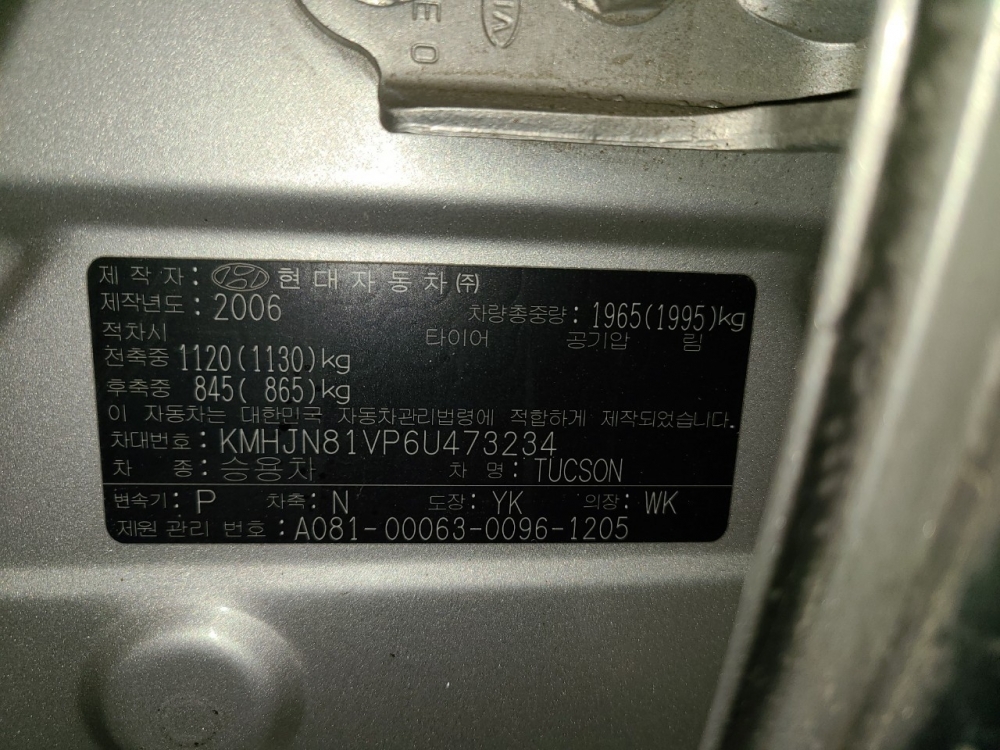 Model Hyundai Tucson Vehicle identification number KMHJN81VP6U473234