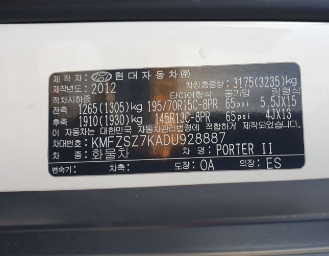 모델 Hyundai Porter2(H100) 트럭적재중량 1