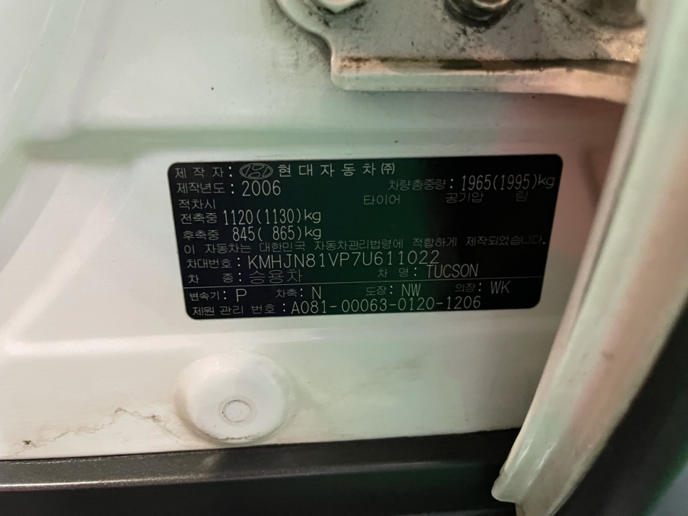 Model Hyundai Tucson Vehicle identification number KMHJN81VP7U611022