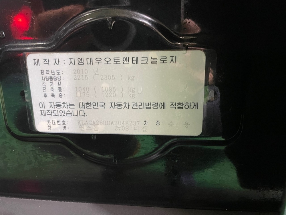Model Chevrolet Winstorm Vehicle identification number KLACA26RDAB048237