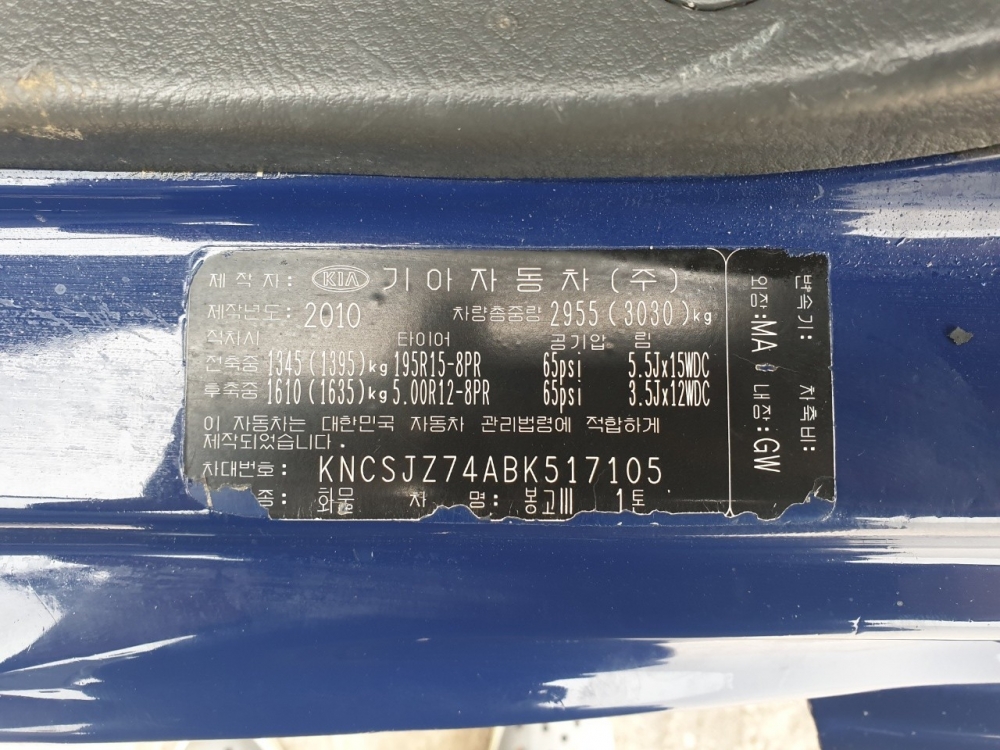 Model Kia Bongo3(K2700) Loading Weight