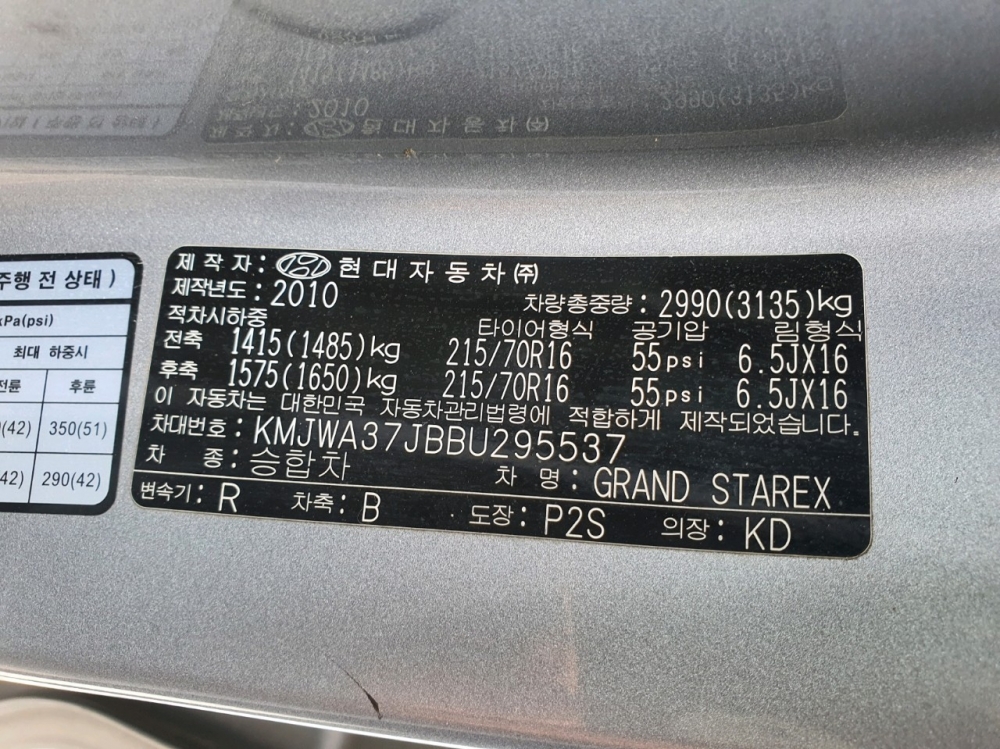 Model Hyundai Starex Vehicle identification number KMJWA37JBBU295537