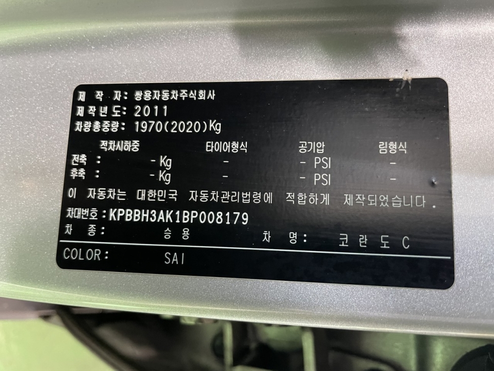 Model Ssangyong Korando Vehicle identification number KPBBH3AK1BP008179